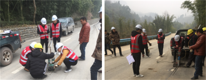 1月25日,寶興縣公路養(yǎng)護(hù)段組織第三方試驗檢測機(jī)構(gòu)對路橋公司承建的“羅家村一、四、七組通組公路改(擴(kuò))建工程(K0+000~K0+800段)路面鋪筑及沿線邊溝、 交安工程”進(jìn)行交工驗收外業(yè)檢測。寶興縣發(fā)改局、紀(jì)檢組以及參建監(jiān)理、設(shè)計、施工單位代表一同前往該項目現(xiàn)場進(jìn)行交工驗收。