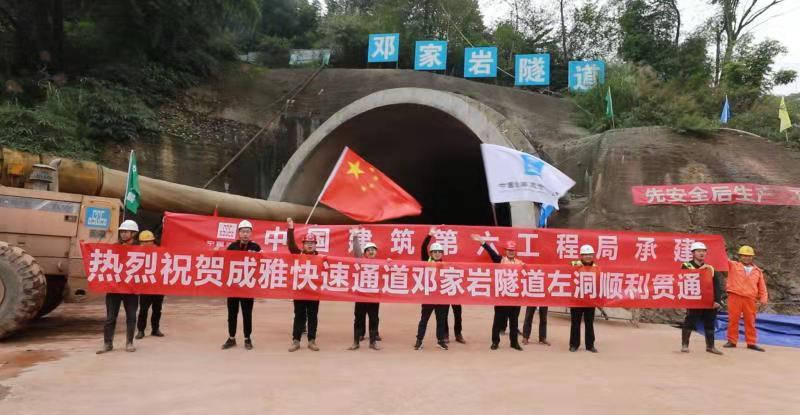 10月23日上午,成雅快速通道控制性工程——鄧家?guī)r隧道左洞順利貫通。鄧家?guī)r大橋施工也在加快推進,左線墩柱已完工,右線墩柱預計11月中旬完工。