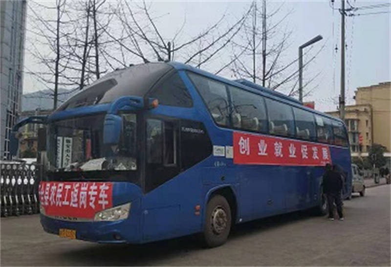 2月22日上午,天全縣25名農(nóng)民工人乘坐蜀通旅游分公司首趟跨省專車返崗復(fù)工,目的地為安徽省黃山市祁門縣石川村新莊橫洞工地,全程1764公里。