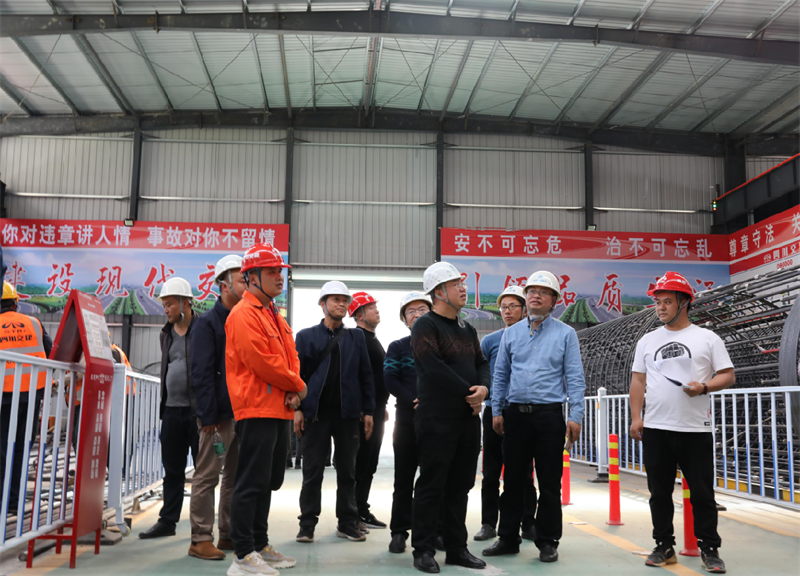 羅倫全一行通過聽取介紹、實地查看、座談交流的方式,重點就項目部駐地規(guī)范化、精細化建設(shè),鋼筋加工場、拌合站、隧道洞口等主要施工場地的場地規(guī)劃、安全設(shè)施布置,鋼筋加工場和拌合站智能化、標準化作業(yè),隧道工程科學化施工、黨建文化生活、勞務(wù)管理等進行全面學習交流。