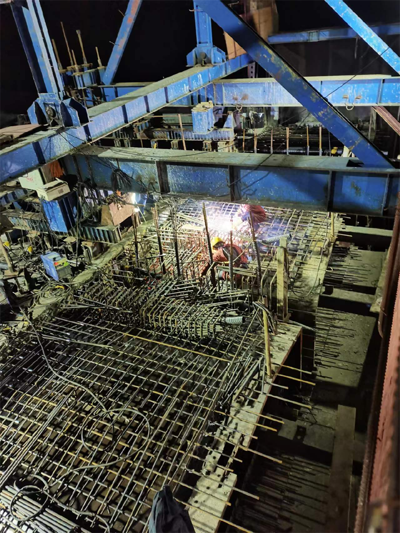 為確保項(xiàng)目高效推進(jìn),交建路橋搶抓黃金工期,共投入14臺設(shè)備、70余人,加班加點(diǎn)、挑燈夜戰(zhàn)綁扎K3+415成雅高速跨線大橋邊跨現(xiàn)澆段鋼筋。工地現(xiàn)場燈火通明,機(jī)械轟鳴,施工人員揮汗如雨,一派繁忙景象,工程建設(shè)井然有序。此次搶工,為后續(xù)項(xiàng)目施工積蓄了發(fā)展動能,同時也保障了項(xiàng)目總體目標(biāo)的實(shí)現(xiàn)。