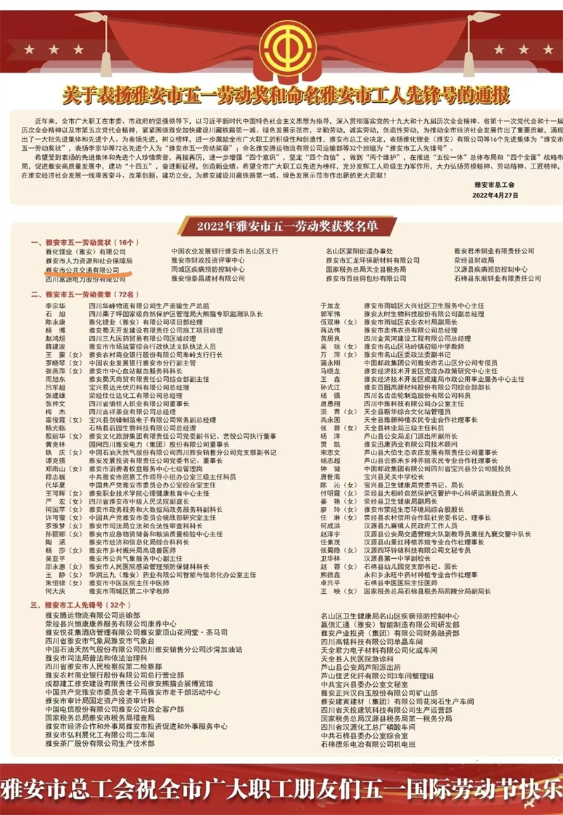 交建集團(tuán):雅安市公共交通有限公司 榮獲全市五一勞動(dòng)獎(jiǎng)狀