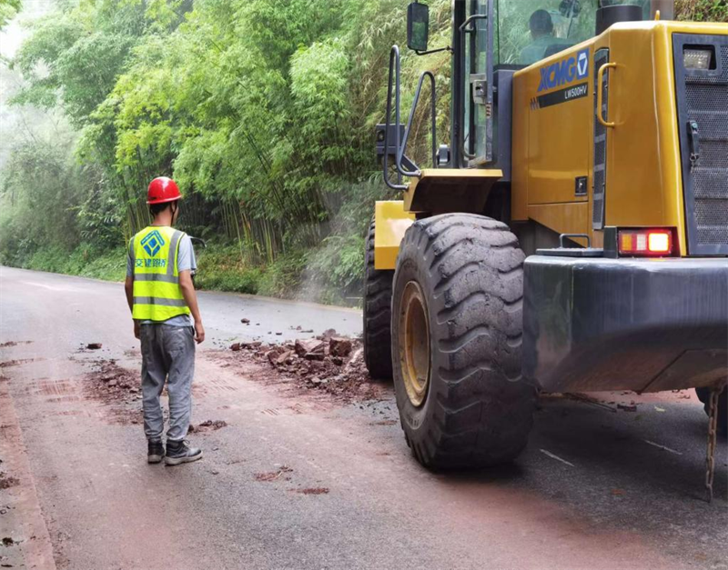 災情發(fā)生后,交建路橋公司省道104改建工程項目部應望魚鎮(zhèn)抗洪搶險應急指揮部要求,立即啟動抗洪搶險應急預案,由20余名現(xiàn)場施工人員組成的搶險隊伍兵分三路,投入挖機2臺、裝載機2臺、水車1臺、皮卡車2輛,圓滿完成雅趙路多處塌方和曹萬村、嫣溪溝村等村道泥石流及邊坡坍塌土石方清理工作,及時恢復道路交通,受到當?shù)攸h委政府和村民一致好評。