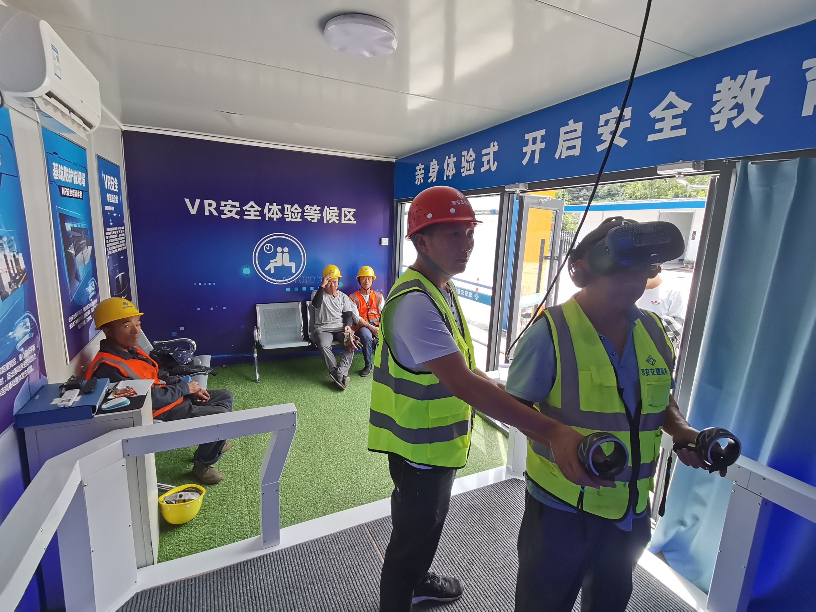 針對各在建項目勞務(wù)施工人員占大多數(shù)且安全意識薄弱、自我保護(hù)意識不足實際,路橋公司結(jié)合開展“安全生產(chǎn)月”系列活動,分批次組織各在建項目作業(yè)人員進(jìn)行安全VR體驗培訓(xùn),利用VR技術(shù)打造1:1的虛擬培訓(xùn)場景,將抽象的理論知識變得直觀形象,受訓(xùn)者以第一視角“親歷”高空作業(yè)、高空塔吊、機(jī)械操作等危險場景,帶來高度真實感的沉浸式體驗,切實讓工人在VR培訓(xùn)中通過視覺、聽覺、觸覺反饋,形成強(qiáng)烈的心理震懾作用,讓現(xiàn)場施工作業(yè)人員最大限度增強(qiáng)安全防范意識。