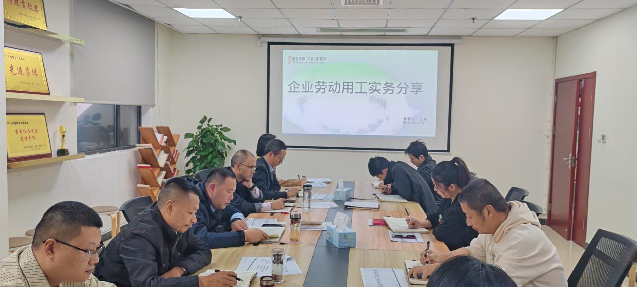 為進(jìn)一步加強勞動用工實務(wù)操作,提高解決勞動爭議的能力和技巧,10月31日,項管公司邀請成都國浩律師事務(wù)所王慧律師開展了勞動用工實務(wù)培訓(xùn)活動,公司領(lǐng)導(dǎo)班子、中層及相關(guān)經(jīng)辦人員約20人參加培訓(xùn)。