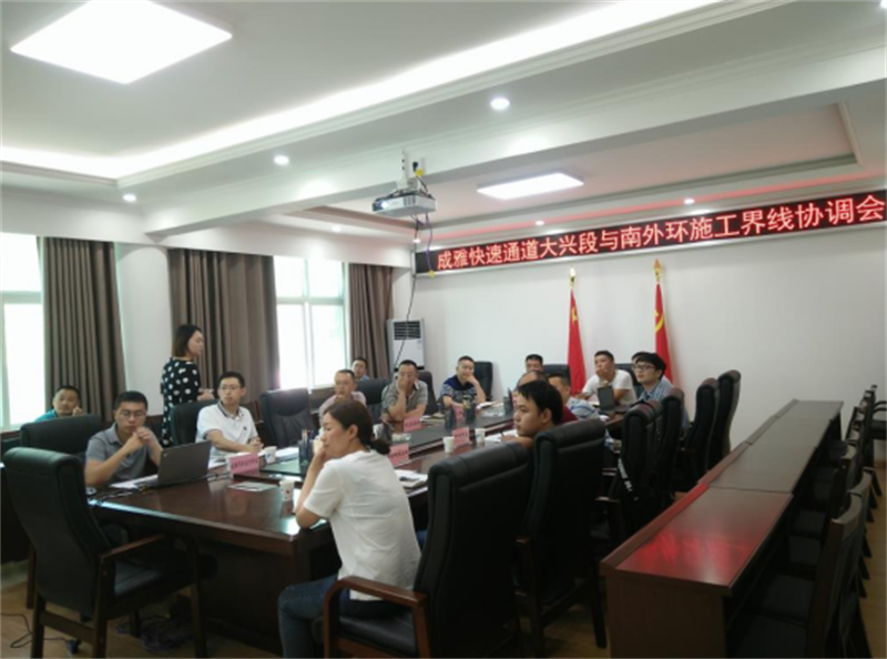 2018年6月20下午,市住建局、市交通局組織成雅快速通道新建項(xiàng)目和南外環(huán)建設(shè)項(xiàng)目兩個(gè)項(xiàng)目業(yè)主單位 、設(shè)計(jì)單位、監(jiān)理單位、施工單位在交建集團(tuán)召開協(xié)調(diào)會(huì),協(xié)商解決成雅快速通道大興段與南外環(huán)設(shè)計(jì)方案對(duì)接問題。