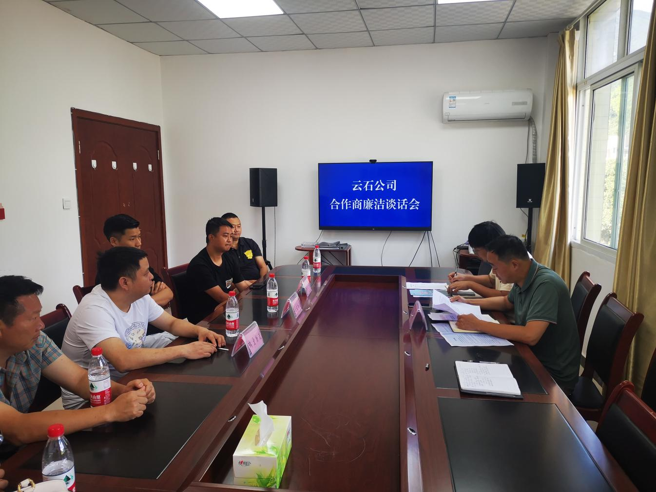 為營造風(fēng)清氣正、崇尚廉潔的合作氛圍,7月1日上午,云石公司總經(jīng)理趙強(qiáng)主持召開合作商廉潔座談會。公司班子成員、業(yè)務(wù)部門負(fù)責(zé)人、紀(jì)檢聯(lián)絡(luò)員以及新采購的3家合作商代表參加座談。