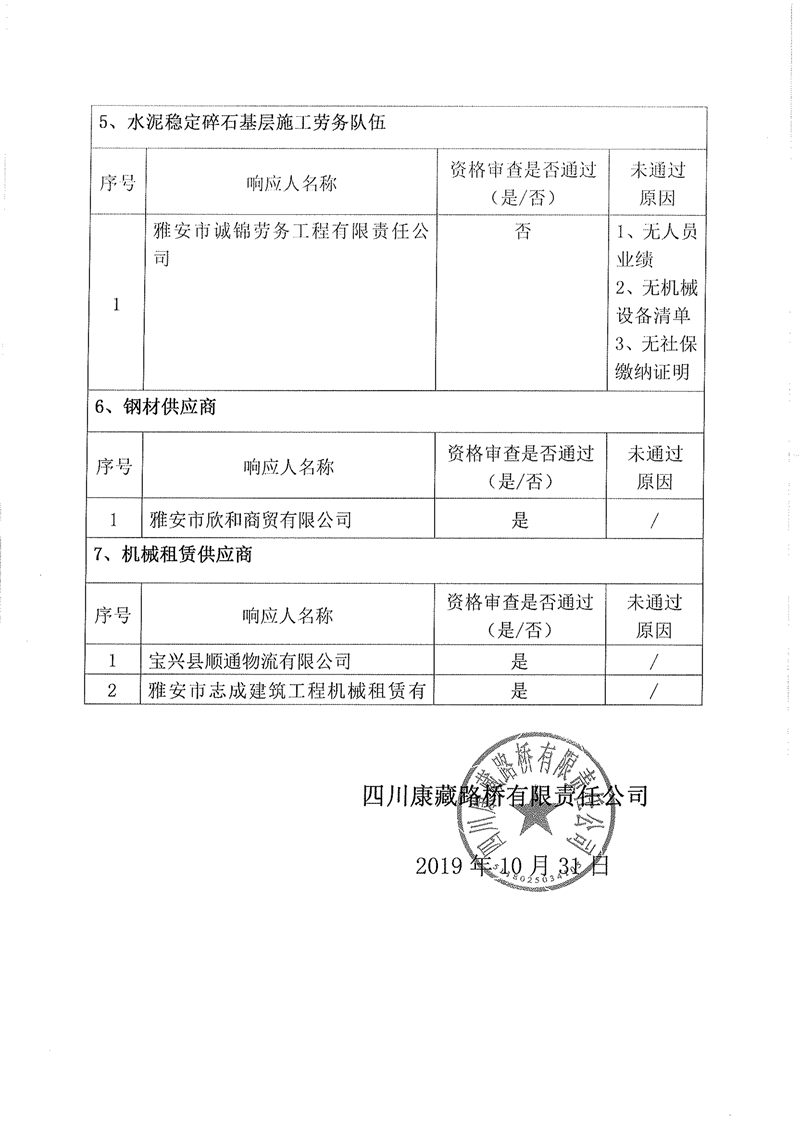 四川康藏路橋有限責(zé)任公司企業(yè)入庫比選(補(bǔ)錄)結(jié)果公示