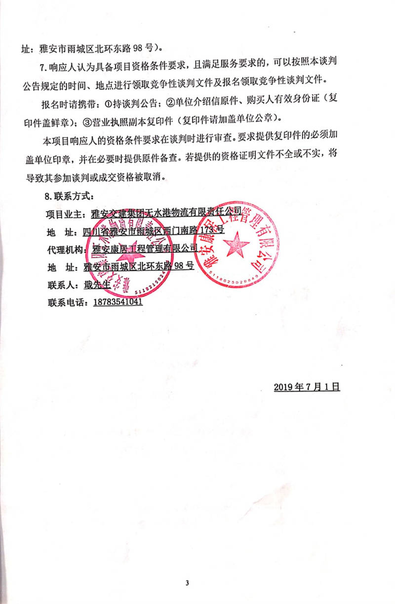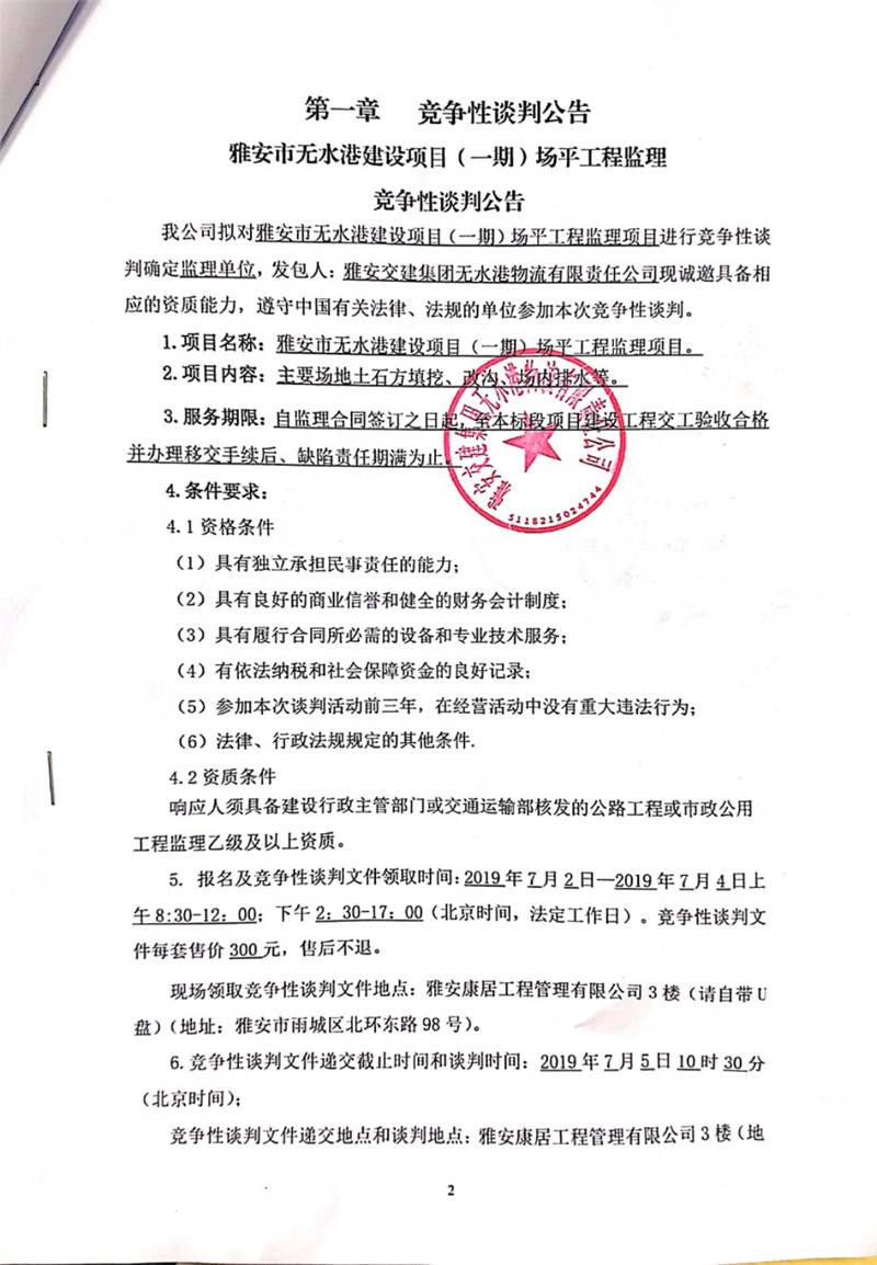 雅安交建集團(tuán)無水港物流有限責(zé)任公司雅安市無水港建設(shè)項(xiàng)目(一期)場平工程監(jiān)理競爭性談判公告