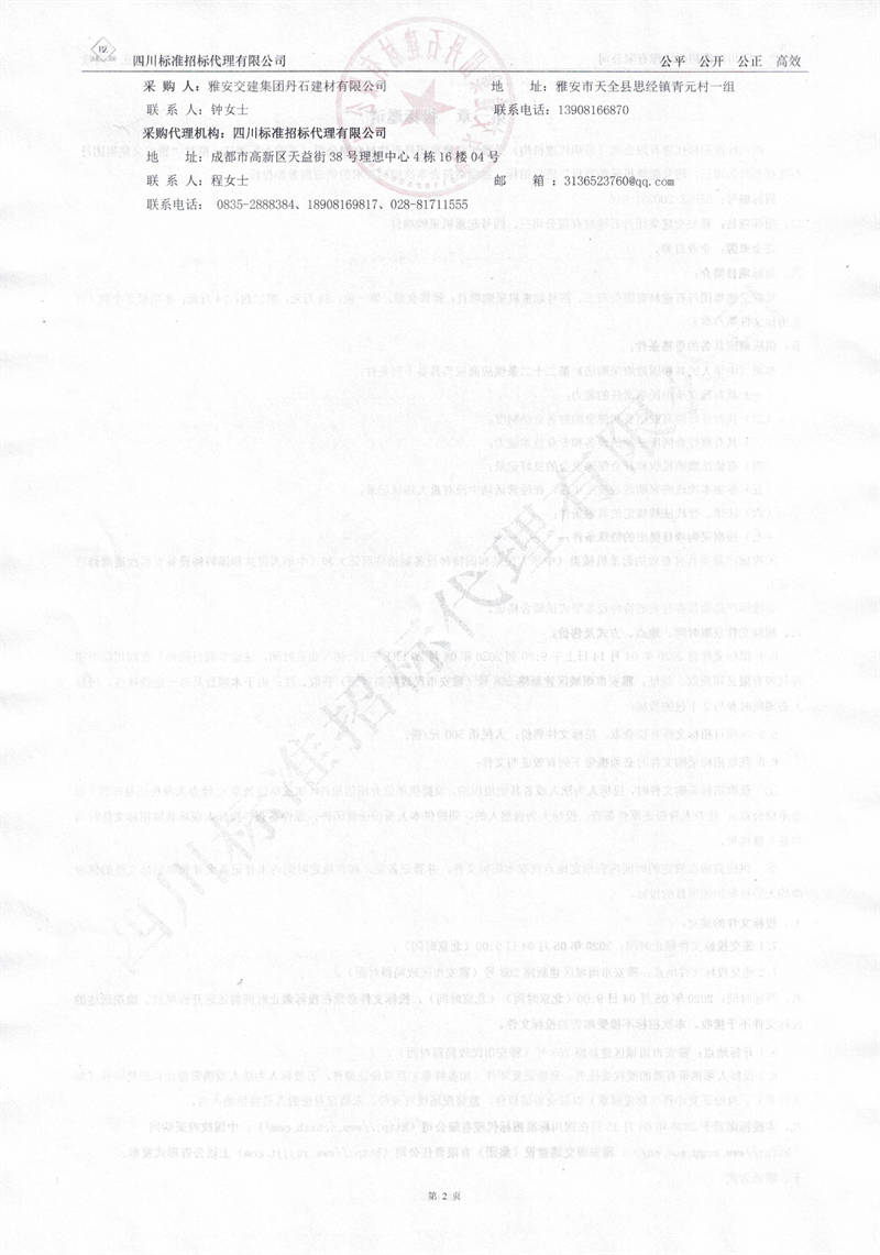 雅安交建集團資產(chǎn)經(jīng)營管理有限公司成雅高速金雞關(guān)互通及服務區(qū)項目(雅安東互通綜合提升改造)水土保持監(jiān)測項目評標結(jié)果公示
