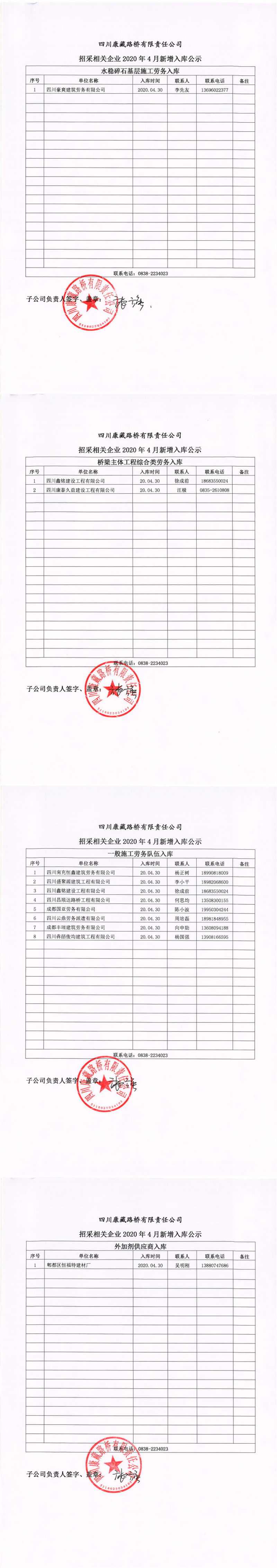 四川康藏路橋有限責任公司招采相關(guān)企業(yè)2020年4月新增入庫公示