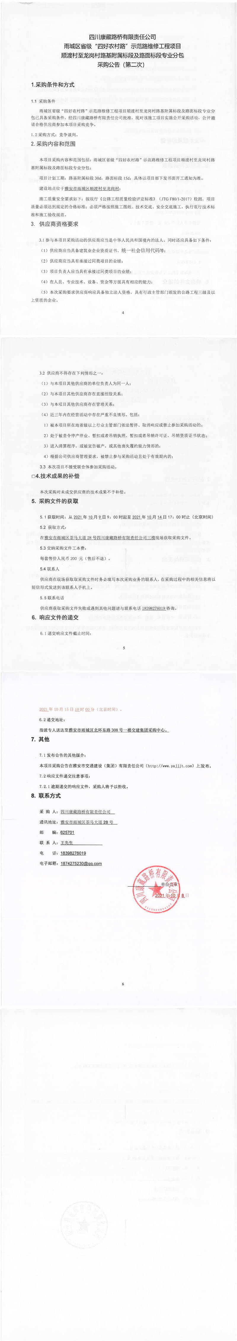四川康藏路橋有限責(zé)任公司雨城區(qū)省級(jí)“四好農(nóng)村路”示范路維修工程項(xiàng)目順渡村至龍崗村路基附屬標(biāo)段及路面標(biāo)段專業(yè)分包采購公告(第二次)