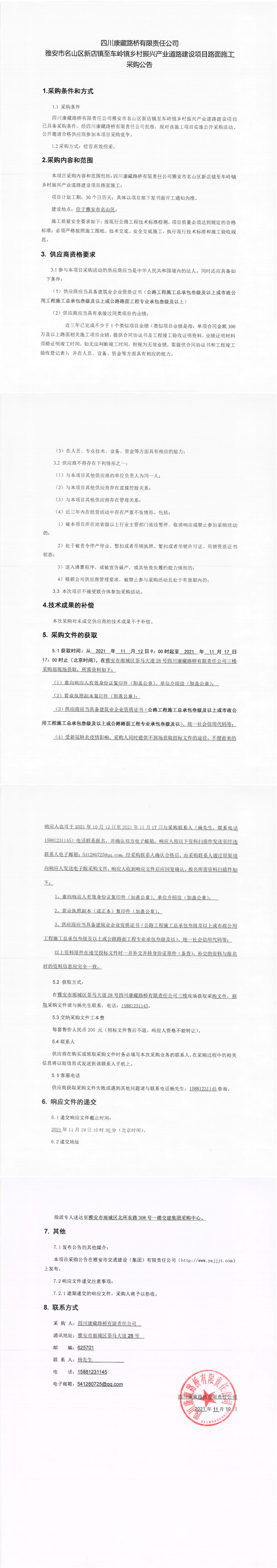 四川康藏路橋有限責(zé)任公司雅安市名山區(qū)新店鎮(zhèn)至車嶺鎮(zhèn)鄉(xiāng)村振興產(chǎn)業(yè)道路建設(shè)項(xiàng)目路面施工采購公告