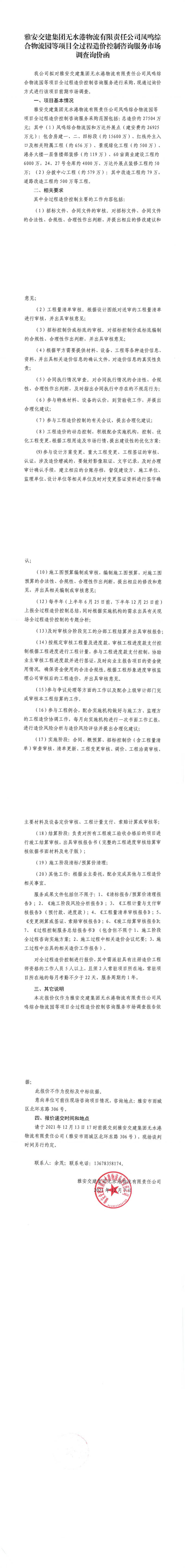 雅安交建集團(tuán)無水港物流有限責(zé)任公司鳳鳴綜合物流園等項目全過程造價控制咨詢服務(wù)市場調(diào)查詢價函