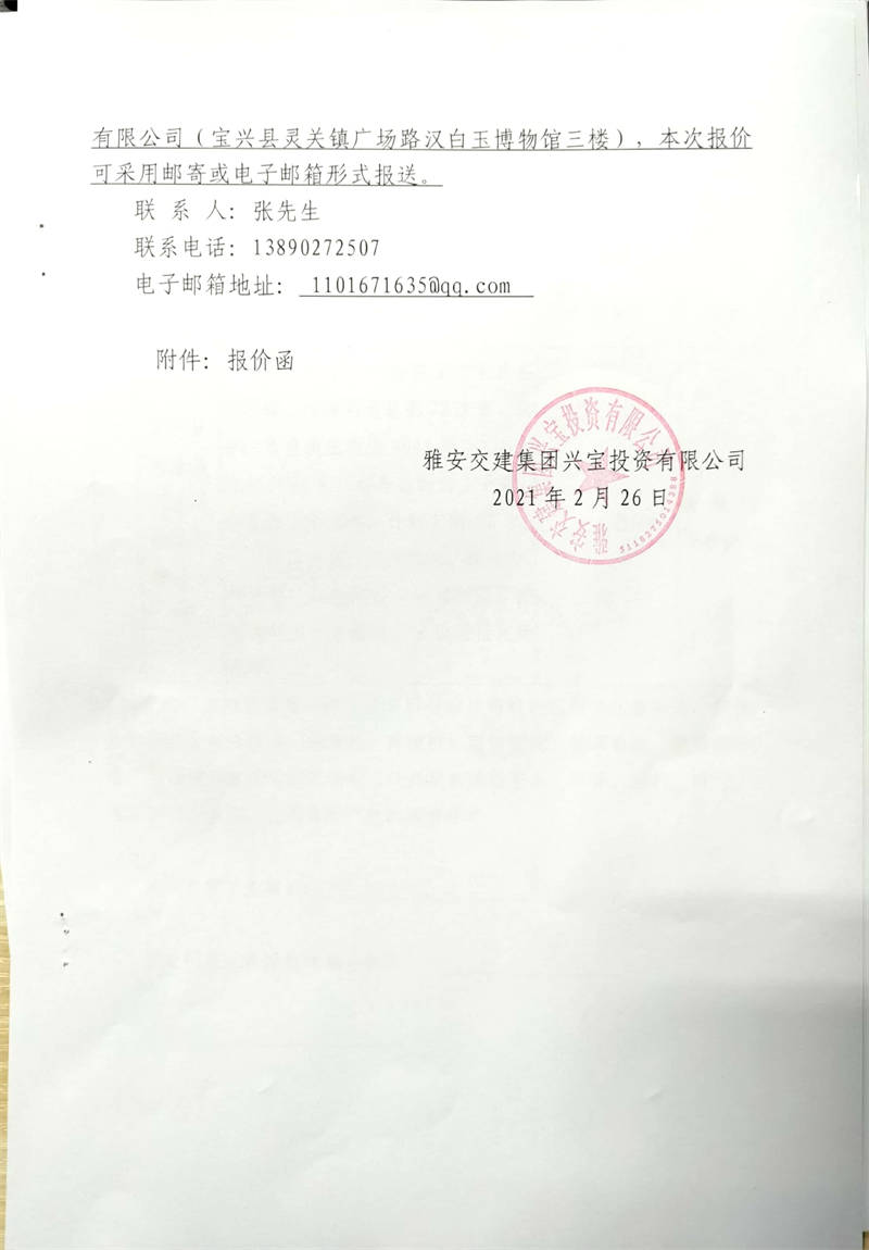 雅安交建集團(tuán)興寶投資有限公司寶興縣大漁溪河道疏浚項(xiàng)目市場(chǎng)調(diào)查詢價(jià)公告