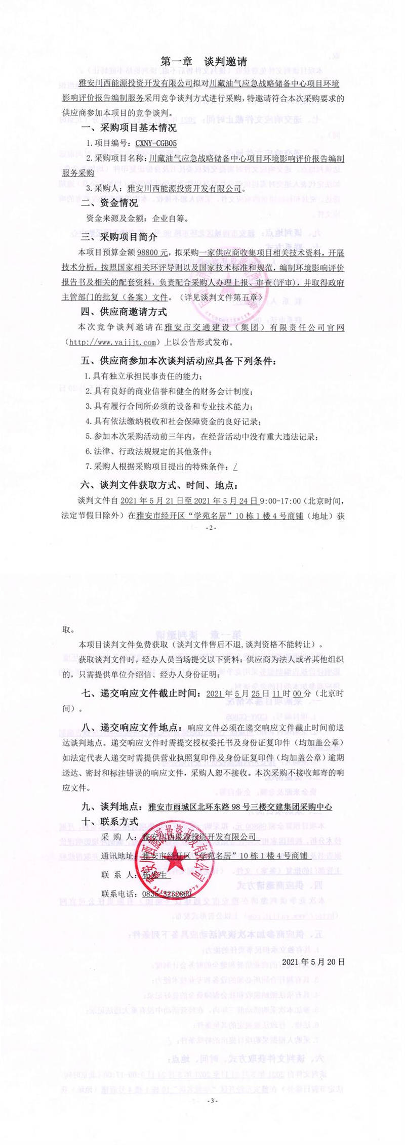 雅安川西能源投資開發(fā)有限公司川藏油氣應急戰(zhàn)略儲備中心項目環(huán)境影響評價報告編制服務采購競爭談判公告