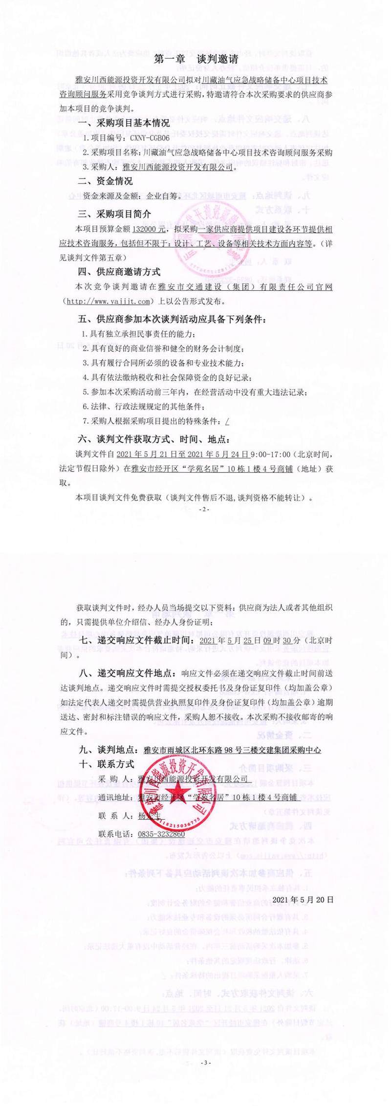 雅安川西能源投資開發(fā)有限公司川藏油氣應(yīng)急戰(zhàn)略儲(chǔ)備中心項(xiàng)目技術(shù)咨詢顧問(wèn)服務(wù)采購(gòu)競(jìng)爭(zhēng)談判公告