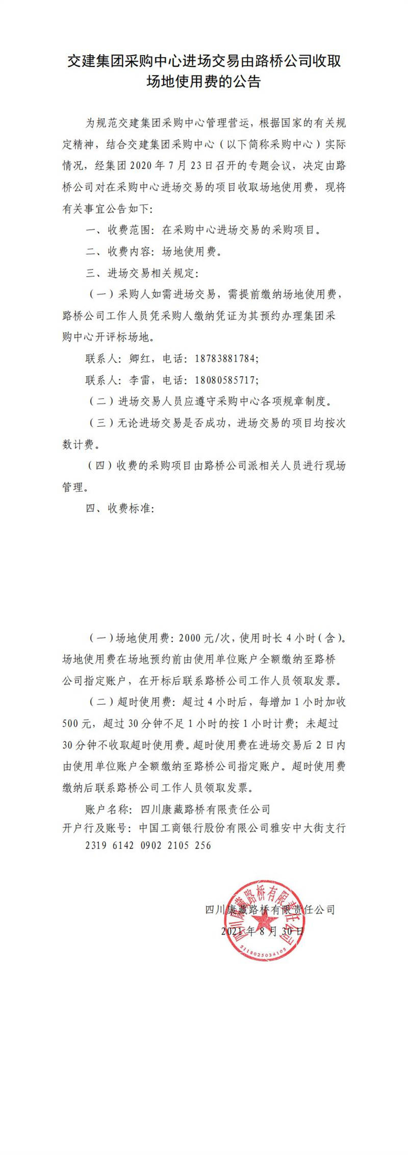 交建集團(tuán)采購中心進(jìn)場(chǎng)交易由路橋公司收取場(chǎng)地使用費(fèi)的公告