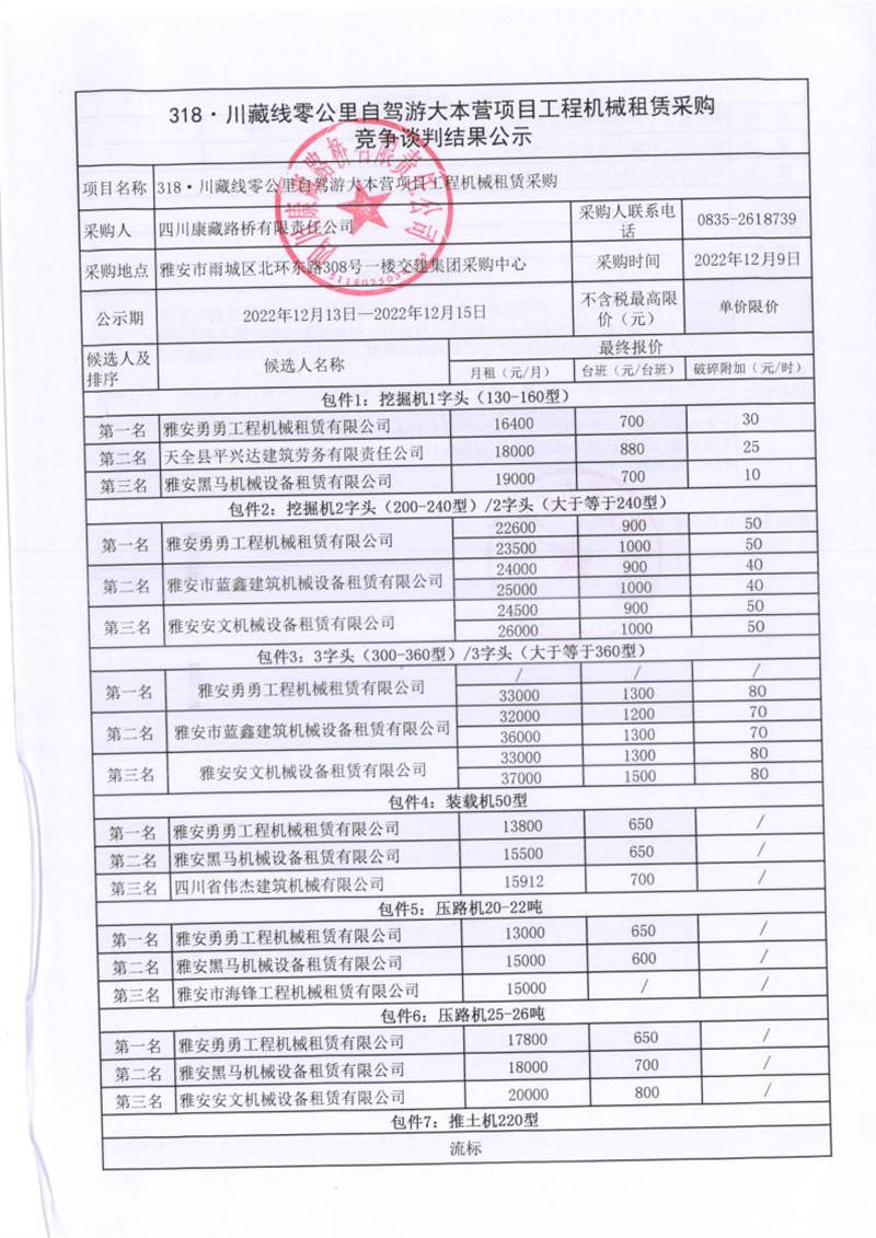 四川康藏路橋有限責(zé)任公司318.川藏線零公里自駕游大本營(yíng)項(xiàng)目工程機(jī)械租賃采購競(jìng)爭(zhēng)談判結(jié)果公示