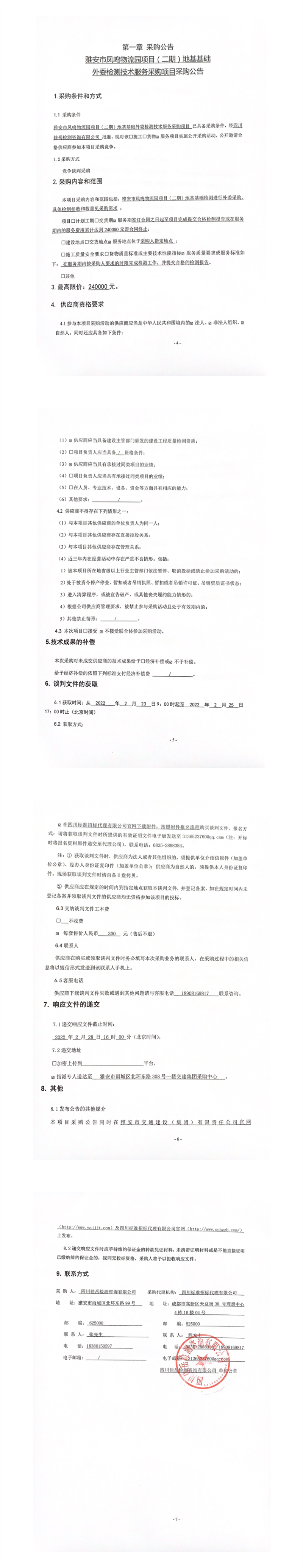 四川佳岳檢測咨詢有限公司雅安市鳳鳴物流園項(xiàng)目(二期)地基基礎(chǔ)外委檢測技術(shù)服務(wù)采購項(xiàng)目采購公告