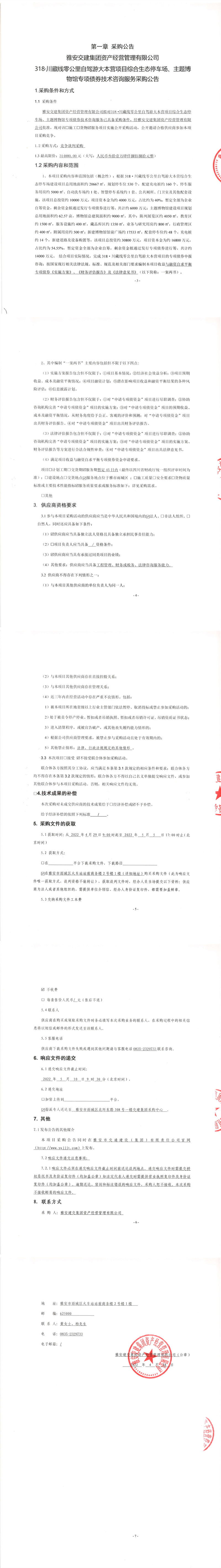 雅安交建集團資產(chǎn)經(jīng)營管理有限公司318.川藏線零公里自駕游大本營項目綜合生態(tài)停車場、主題博物館專項債券技術(shù)咨詢服務采購公告