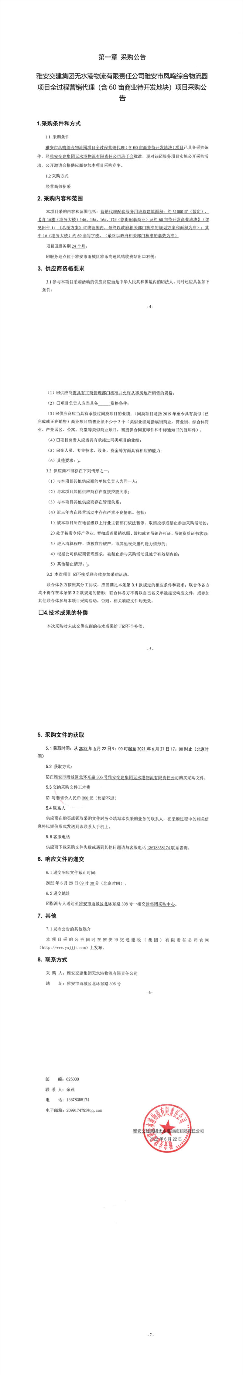 雅安交建集團(tuán)無(wú)水港物流有限責(zé)任公司雅安市鳳鳴綜合物流園項(xiàng)目全過(guò)程營(yíng)銷代理(含60畝商業(yè)待開發(fā)地塊)項(xiàng)目采購(gòu)公告