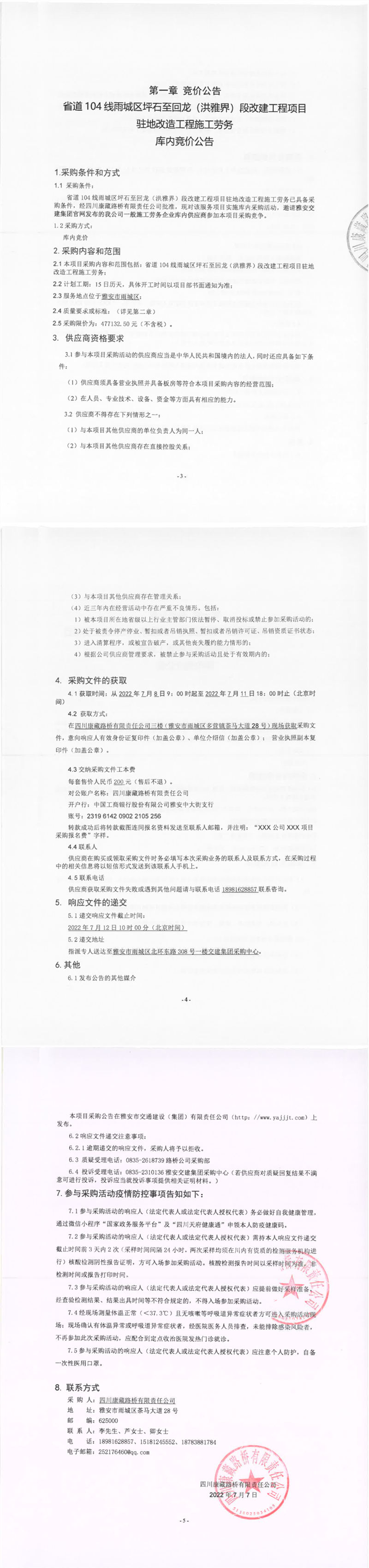 四川康藏路橋有限責(zé)任公司省道104線雨城區(qū)坪石至回龍(洪雅界)段改建工程項(xiàng)目駐地改造工程施工勞務(wù)庫內(nèi)競(jìng)價(jià)公告