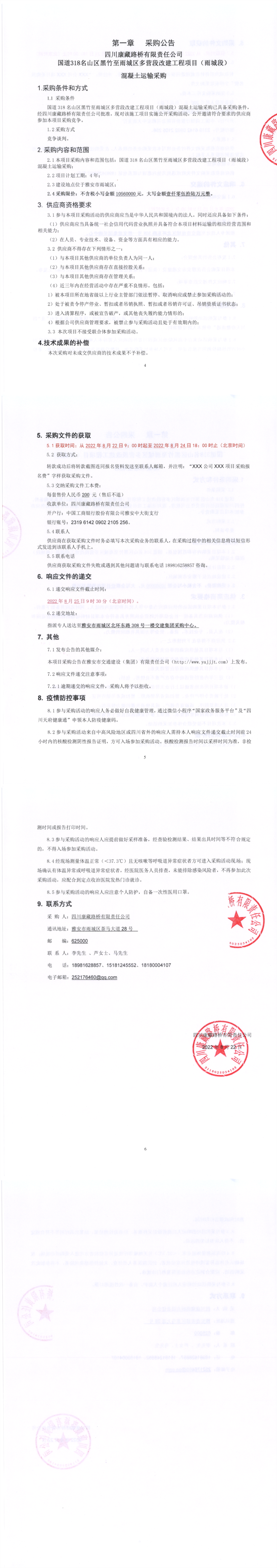 四川康藏路橋有限責(zé)任公司國(guó)道318名山區(qū)黑竹至雨城區(qū)多營(yíng)段改建工程項(xiàng)目(雨城段)混凝土運(yùn)輸采購(gòu)公告