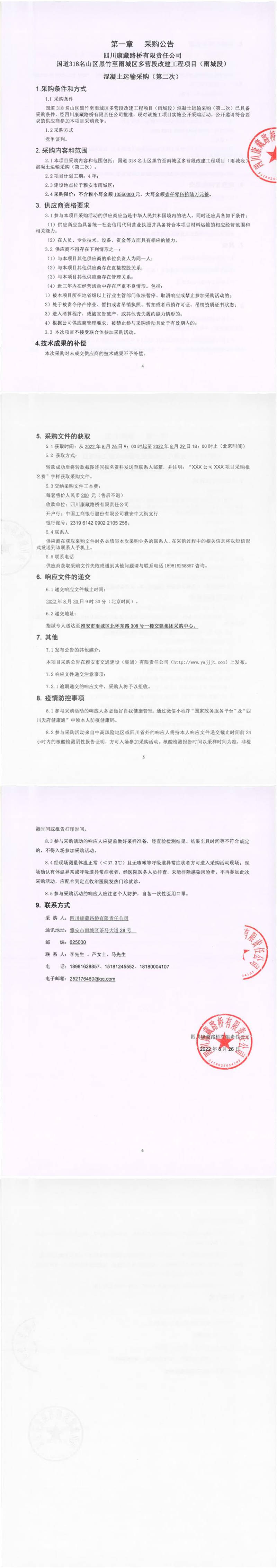 四川康藏路橋有限責(zé)任公司國道318名山區(qū)黑竹至雨城區(qū)多營段改建工程項目(雨城段)混凝土運輸(第二次)采購公告