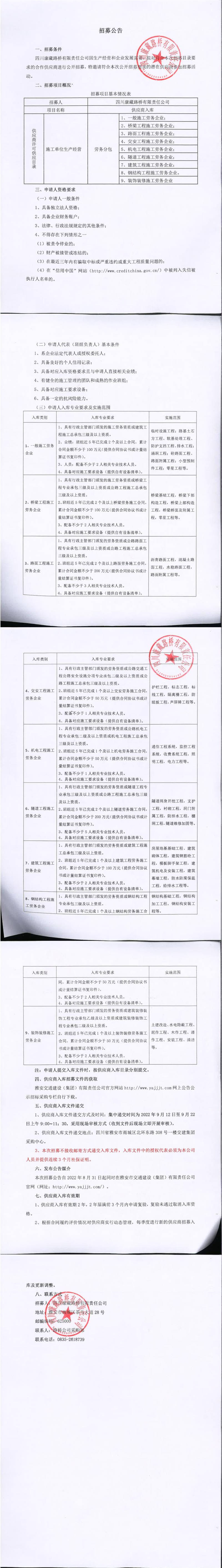 四川康藏路橋有限責(zé)任公司2022年第三季度供應(yīng)商入庫(kù)招募文件(點(diǎn)擊自行下載)