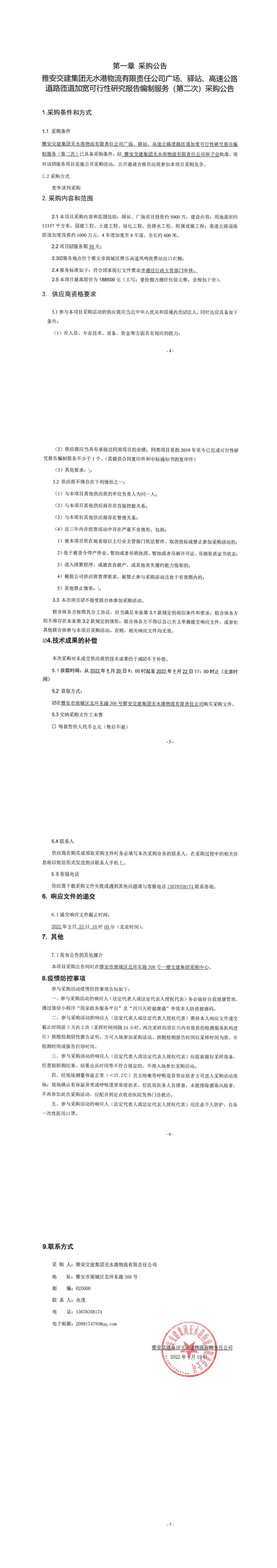 雅安交建集團無水港物流有限責(zé)任公司廣場、驛站、高速公路道路匝道加寬可行性研究報告編制服務(wù)(第二次)采購公告