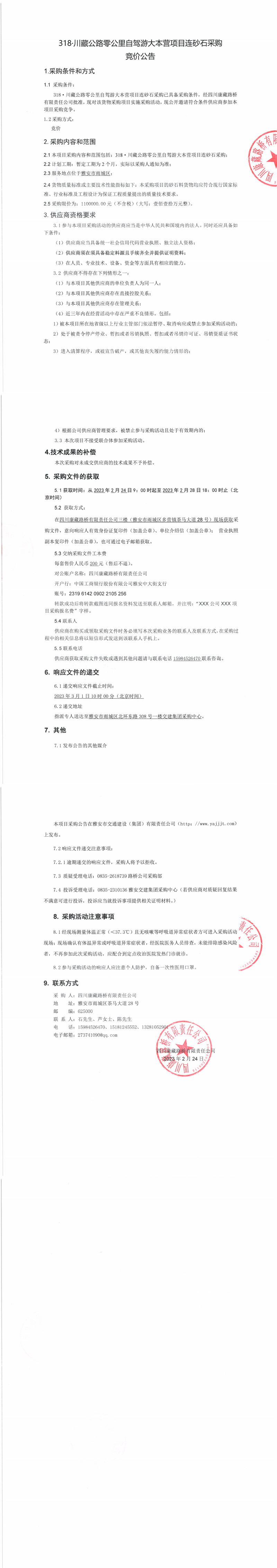 四川康藏路橋有限責(zé)任公司318·川藏公路零公里自駕游大本營項(xiàng)目連砂石采購競價(jià)公告
