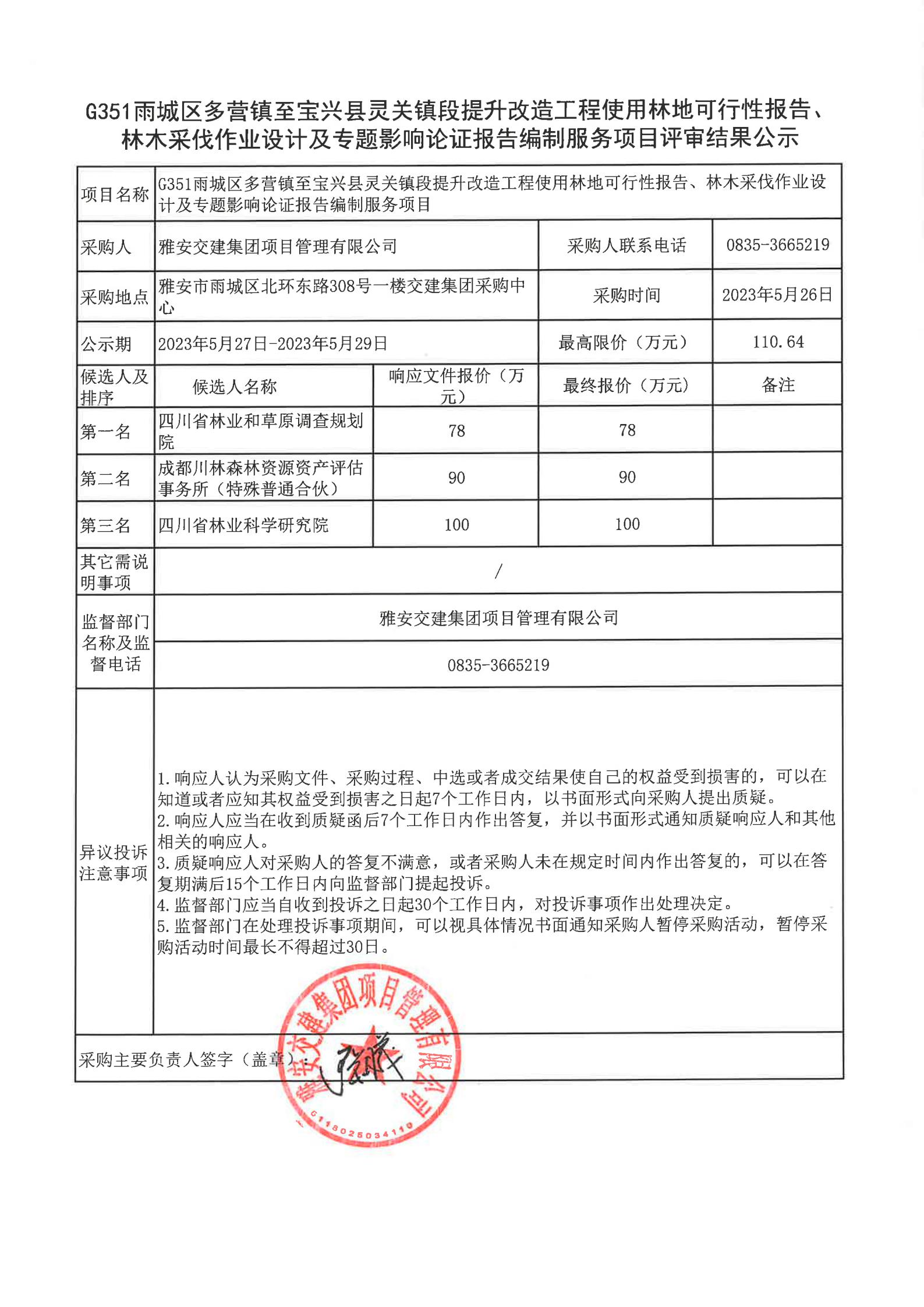 雅安交建集團項目管理有限公司G351雨城區(qū)多營鎮(zhèn)至寶興縣靈關(guān)鎮(zhèn)段提升改造工程使用林地可行性報告、林木采伐作業(yè)設(shè)計及專題影響論證報告編制服務項目評審結(jié)果公示