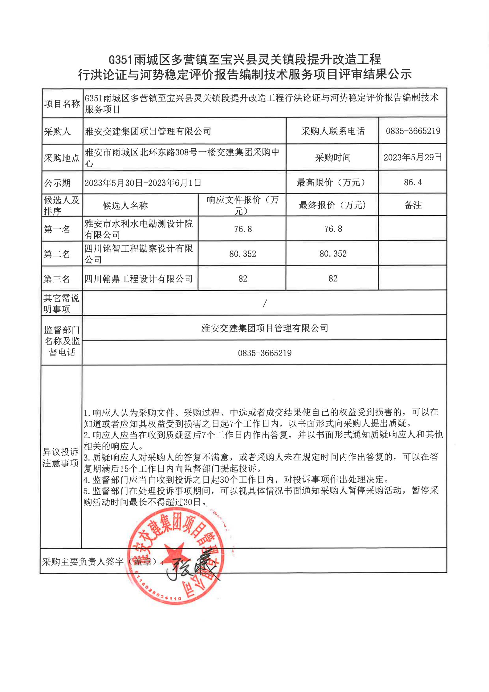 雅安交建集團(tuán)項(xiàng)目管理有限公司G351雨城區(qū)多營(yíng)鎮(zhèn)至寶興縣靈關(guān)鎮(zhèn)段提升改造工程行洪論證與河勢(shì)穩(wěn)定評(píng)價(jià)報(bào)告編制技術(shù)服務(wù)項(xiàng)目評(píng)審結(jié)果公示