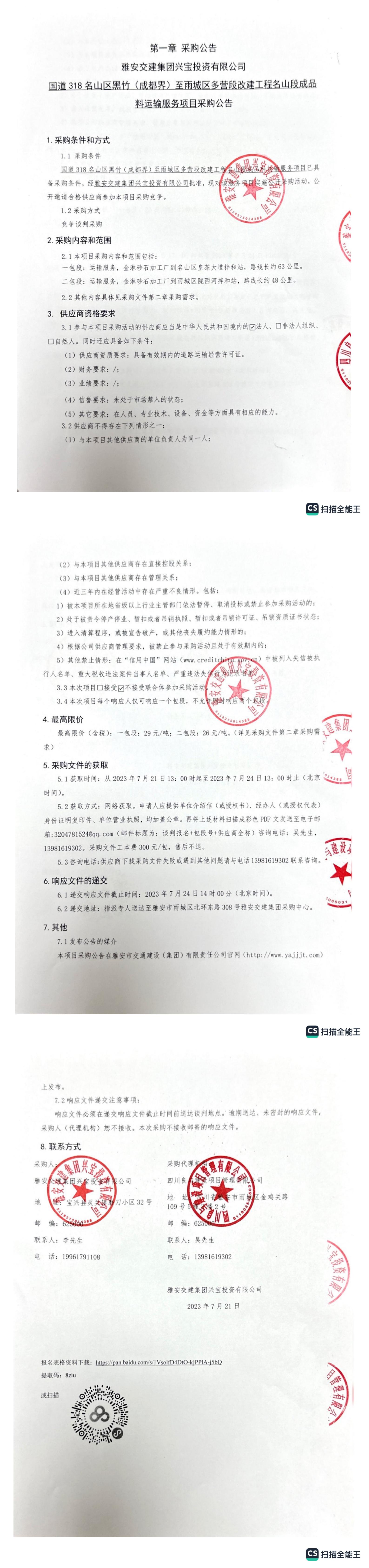 雅安交建集團(tuán)興寶投資有限公司國道318名山區(qū)黑竹(成都界)至雨城區(qū)多營段改建工程名山段成品料運輸服務(wù)項目采購公告