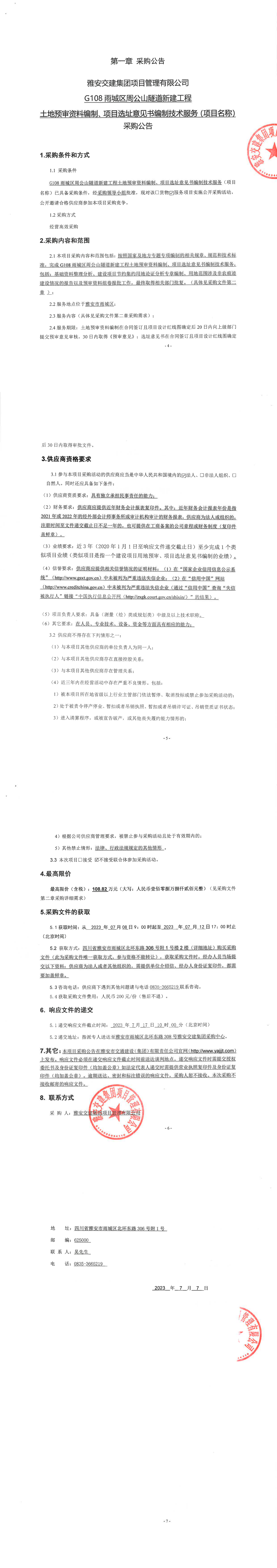 雅安交建集團(tuán)項(xiàng)目管理有限公司G108雨城區(qū)周公山隧道新建工程土地預(yù)審資料編制、項(xiàng)目選址意見(jiàn)書(shū)編制技術(shù)服務(wù)(項(xiàng)目名稱)采購(gòu)公告