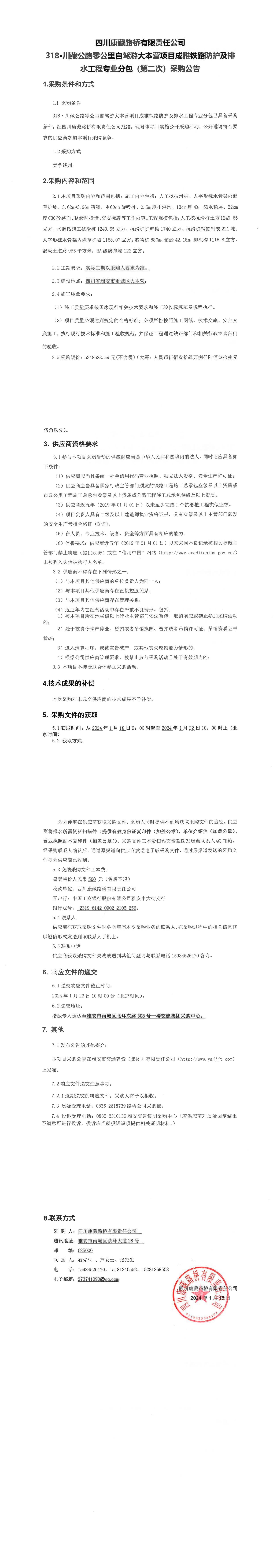 四川康藏路橋有限責(zé)任公司318·川藏公路零公里自駕游大本營項目成雅鐵路防護及排水工程專業(yè)分包(第二次)采購公告