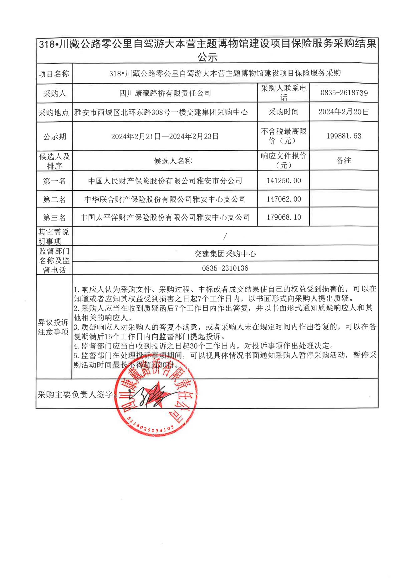 四川康藏路橋有限責任公司318•川藏公路零公里自駕游大本營主題博物館建設項目保險服務采購結果公示