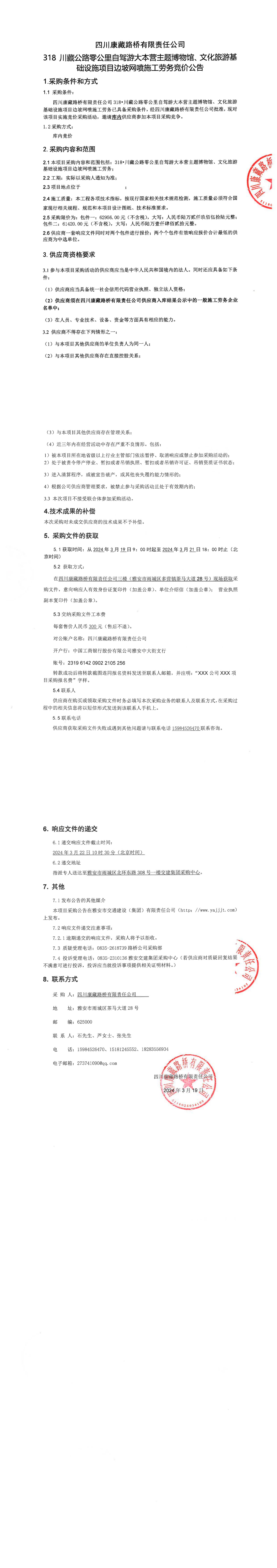 四川康藏路橋有限責(zé)任公司318•川藏公路零公里自駕游大本營主題博物館、文化旅游基礎(chǔ)設(shè)施項(xiàng)目邊坡網(wǎng)噴施工勞務(wù)采購公告