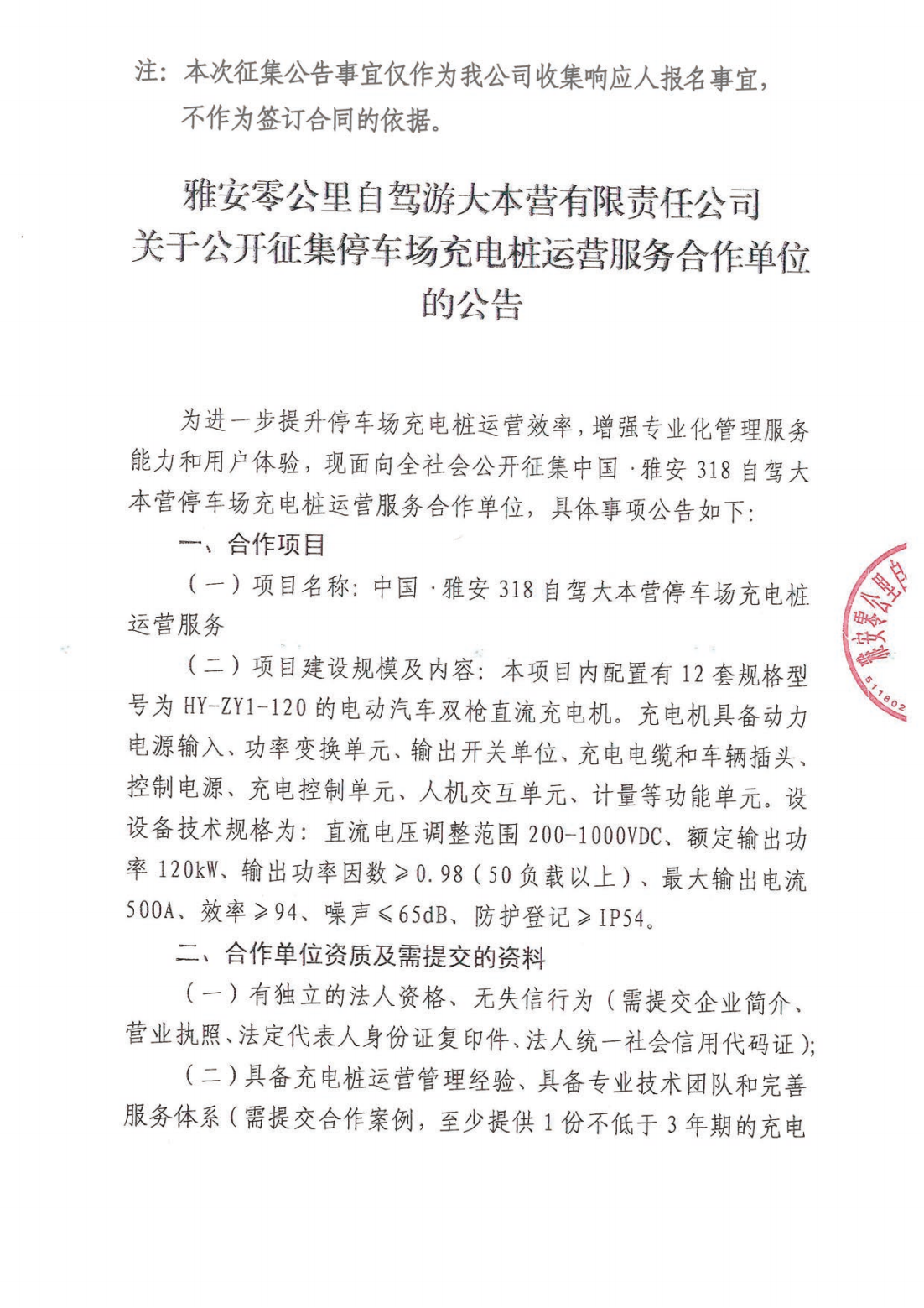 關于公開征集停車場充電樁運營服務合作單位的公告