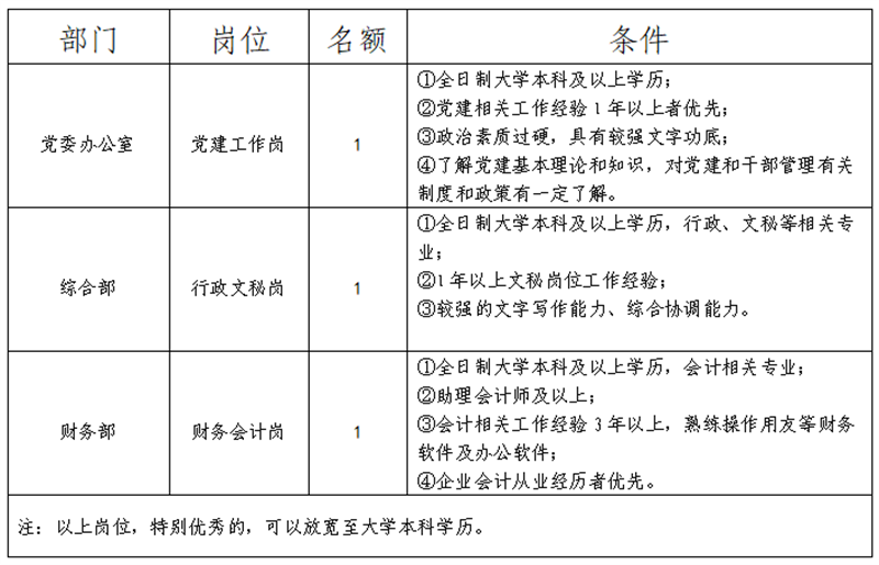 一、 招聘崗位、名額、條件