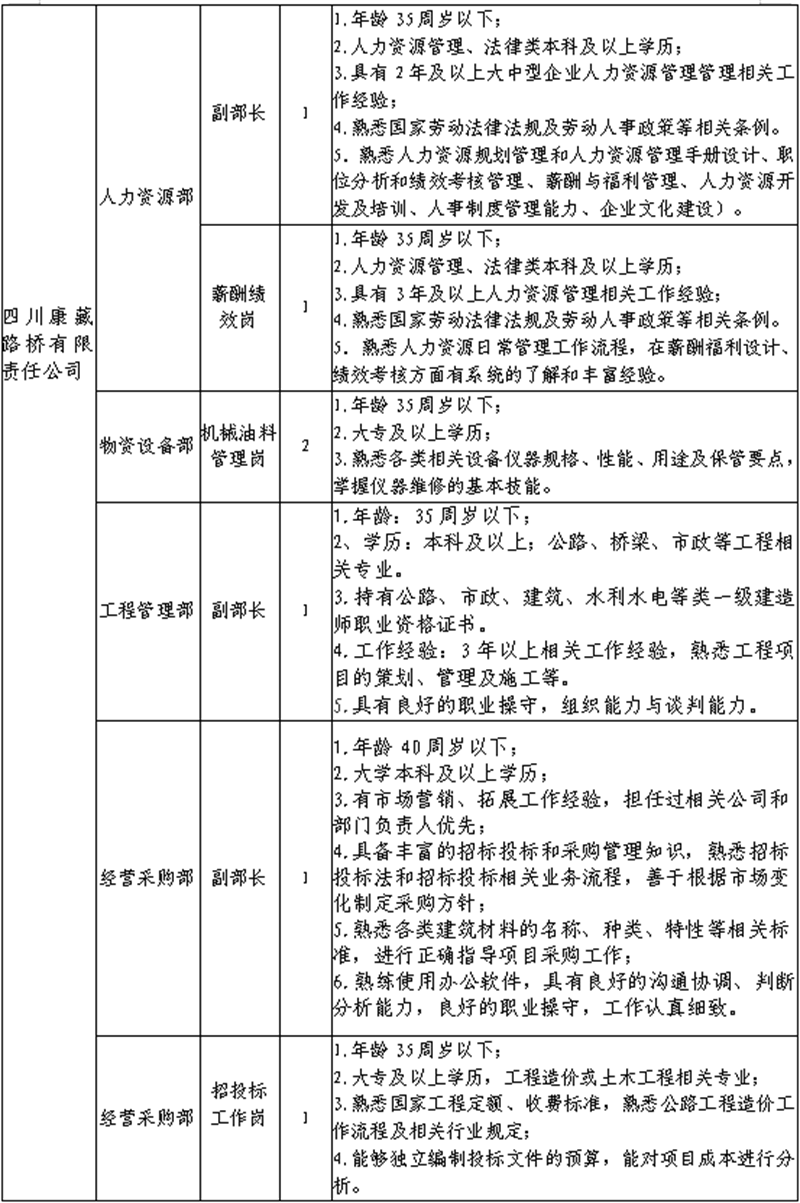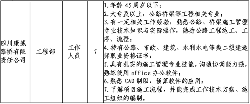 根據(jù)發(fā)展需要,決定面向社會(huì)公開招聘雅安市交通建設(shè)(集團(tuán))有限責(zé)任公司(以下簡(jiǎn)稱“雅安交建集團(tuán)”)所屬子公司工作人員16名,現(xiàn)將有關(guān)事項(xiàng)公告如下: