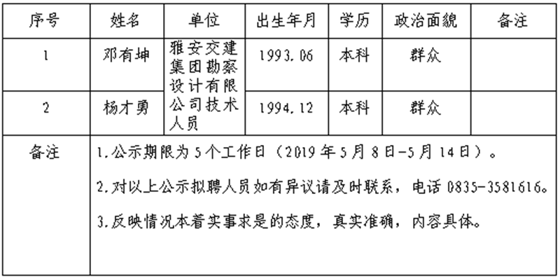 雅安交建集團(tuán)子公司擬聘用人員公示(勘察設(shè)計公司)
