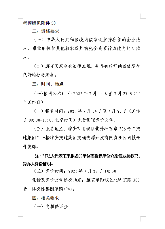 雅安交建集團(tuán)交通資源開發(fā)有限責(zé)任公司關(guān)于雅安市雨城區(qū)姚橋21-01、水中壩安置房西側(cè)地塊招租的公告
