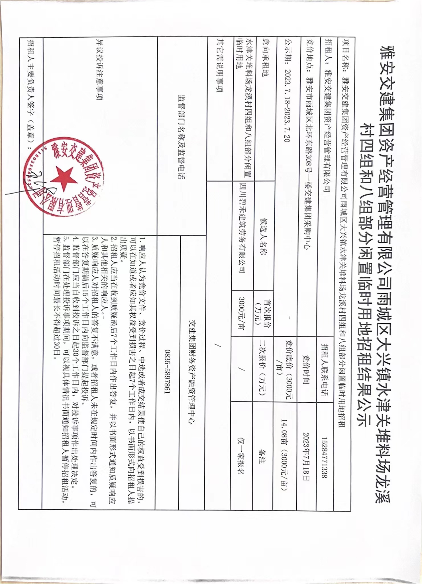 ÑŰ²½»½¨¼¯ˆF(tu¨¢n)½»Í¨ÙYÔ´é_°l(f¨¡)ÓÐÏÞØŸ(z¨¦)Èι«Ë¾êP(gu¨¡n)ÓÚÑŰ²ÊÐÓê³Ç…^(q¨±)Ò¦˜ò21-01ºÍË®ÖЉΉK‰KÕÐ×â½Y(ji¨¦)¹û¹«Ê¾