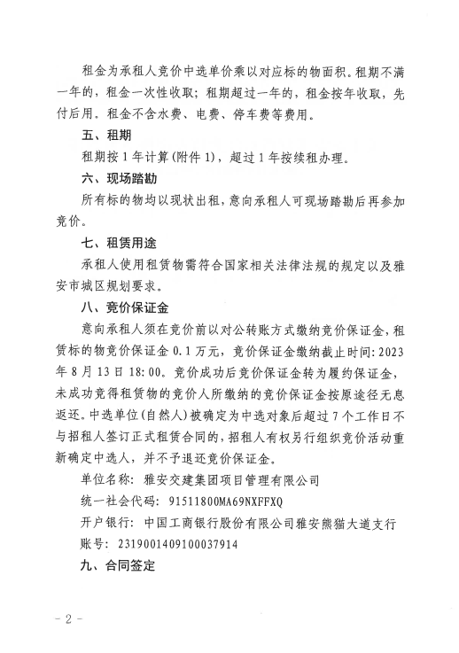 雅安交建集團(tuán)項目管理有限公司關(guān)于雅安多營青衣江大橋左岸橋下可利用地塊掛網(wǎng)招租的公告附件