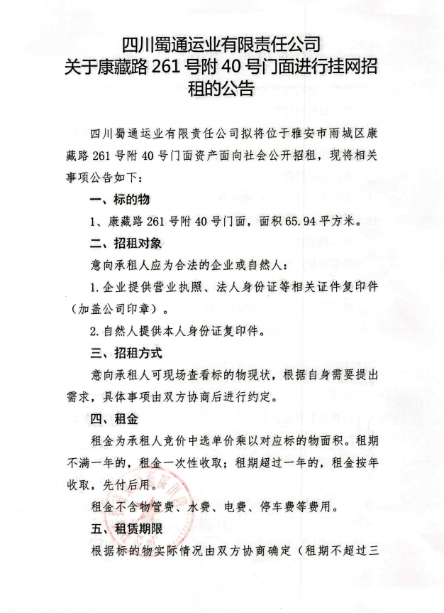 ËÄ´¨Êñͨß\˜I(y¨¨)ÓÐÏÞØŸÈι«Ë¾ êP(gu¨¡n)ÓÚ¿µ²ØÂ·261Ì–¸½40Ì–éTÃæßMÐÐ’ì¾W(w¨£ng)ÕÐ×âµÄ¹«¸æ