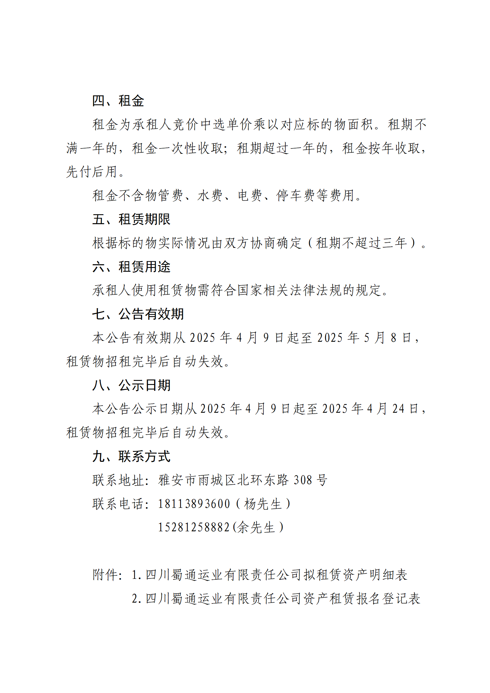四川蜀通運業(yè)有限責(zé)任公司 關(guān)于康藏路261號附22號、平安路30號兩處門面進(jìn)行掛網(wǎng)招租的公告