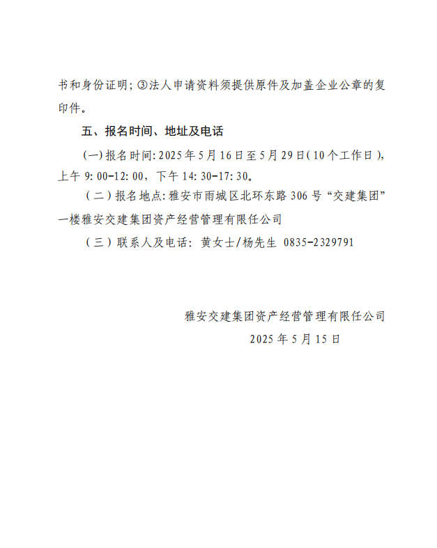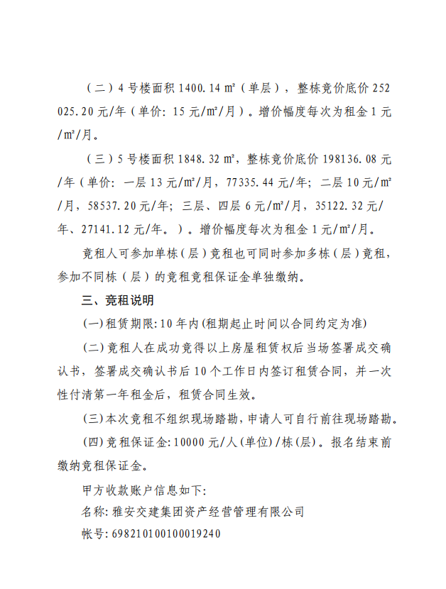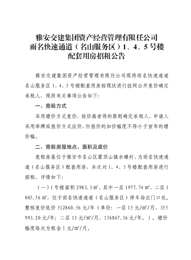 雅安交建集團(tuán)資產(chǎn)經(jīng)營管理有限任公司 雨名快速通道(名山服務(wù)區(qū))1、4、5號樓 配套用房招租公告
