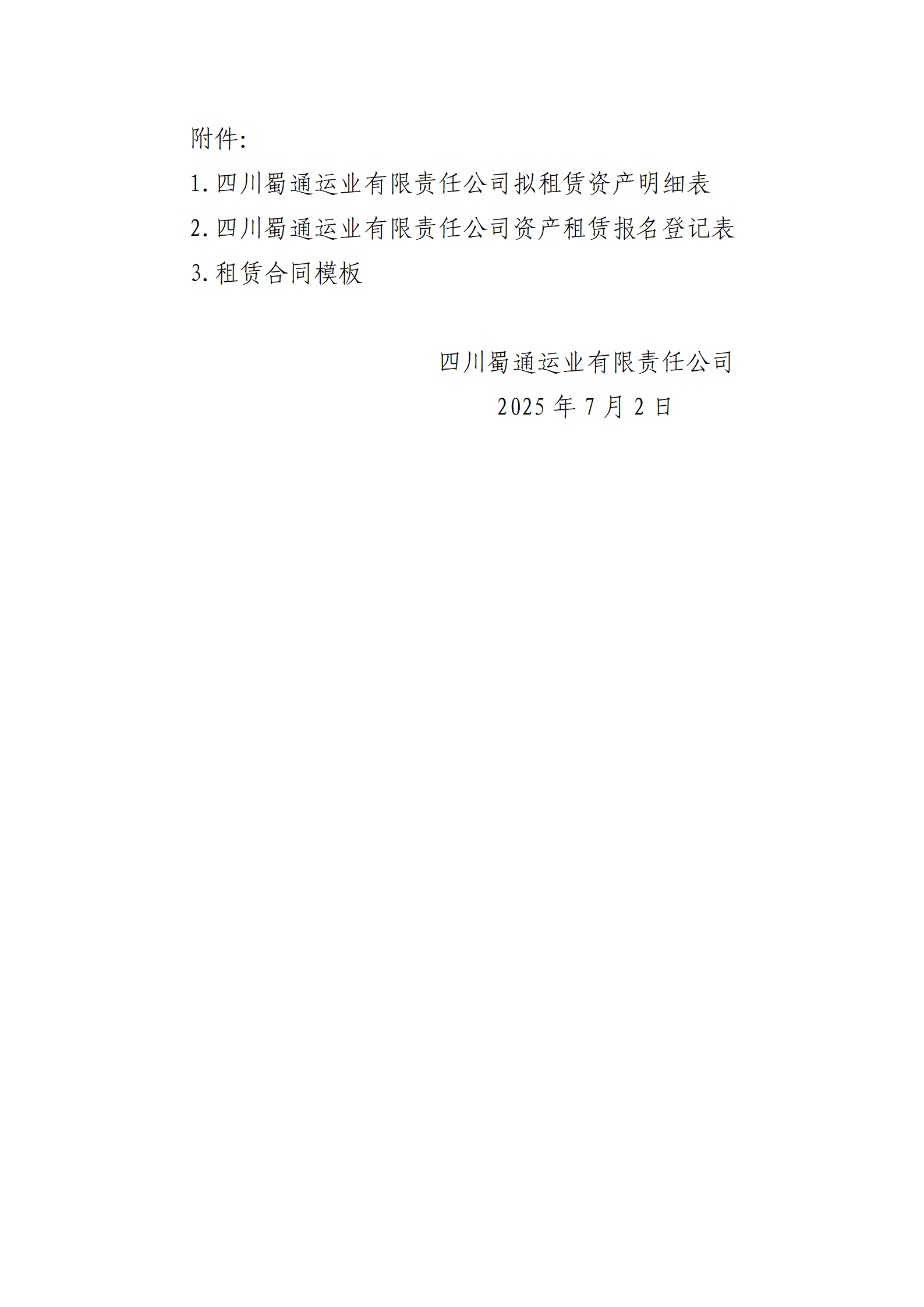 四川蜀通運業(yè)有限責任公司 關(guān)于康藏路61號附1號門面、康藏路85號場地兩處資產(chǎn)進行掛網(wǎng)招租的公告